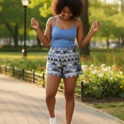 Verty - Women’s Blue Patterned High-Waist Bermudas w/ Sequins$15Houston, TX
