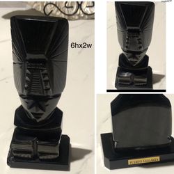 Puerto Vallarta Mayan Tribal Warrior Black Obsidian Stone hand carved sculpture ( small chip at corner$35Houston, TX