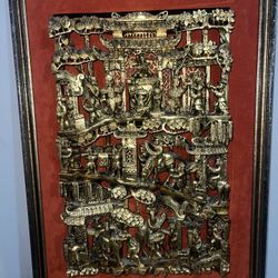 Vintage Chinese Carved Wood Gilt Relief Wall Art – Framed Temple Scene$300Houston, TX