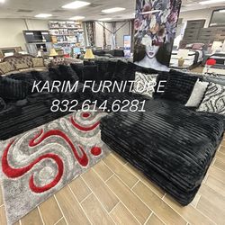 Fluffy Black Corduroy Sectional Couch Free Delivery 🚚 $1,350Katy, TX
