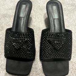 Prada Crystal-Embellished Satin Mules – Black | Size 38$175Fulshear, TX