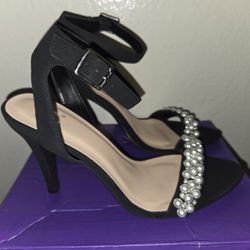 4-inch black heeled shoes with white pearl accessories Size 7$10Houston, TX