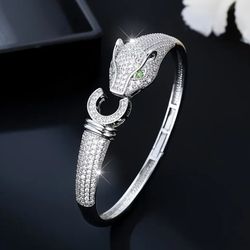 Exquisite Micro Pave 14K White Gold Plated Cubic Zirconia Green Eye Leonard Head Bracelet$20Richmond, TX