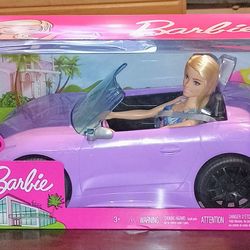 Nuevo auto convertible Barbie de 2 asientos, color morado lavanda, con muñeca Barbie — Mattel$45Houston, TX