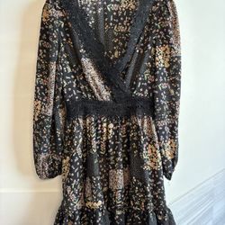 CUPSHE Women's Size SMALL - V Neck Long Sleeve Floral Black A-Line Mini Dress with Lace$10Katy, TX
