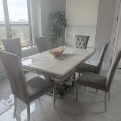 MODERN LUXE 7-Piece Dining Set - Faux Marble & Grey Velvet ✨$850Rosenberg, TX