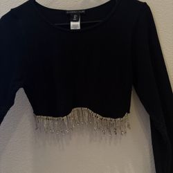 Sincerely Jules Black Gemstone Fringe Crop Top – Size L$20Webster, TX