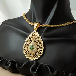 Intricate Craftmanship Paved 14K Gold Plated Green Cubic Zirconia With 24" Rope Necklace $16Houston, TX