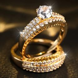2-Pcs Princess Cut 18K Gold Plated Cubic Zirconia Luxury Women's Ring 8, Valentine's Gift 🎁 $15Houston, TX