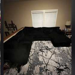 Black Fluffy Corduroy Sectional Couch With Pull Out Bed Free Delivery 🚚 $1,350Katy, TX