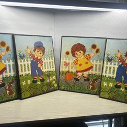 Vintage 70s Raggedy Ann & Andy Litho Wall Art Plaques By Lyn Fiberboard 11"x14"-Reduced $20Houston, TX