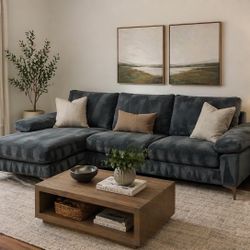 Modern Gray Velvet Sectional Sofa w/ Double Chaise – Deep & Comfortable$350Katy, TX