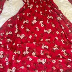 Nwt Universal Thread Floral Button Front Midi Dress Womens M White Red Bohemian Chic$15Houston, TX