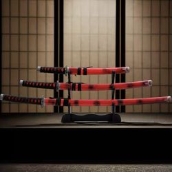 Set of 3 Japanese Katana Swords Red Black Carbon Steel with Display Stand$50Houston, TX