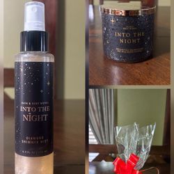 Bath And Body Works Into The Night 3 Wick Candle, 1 Wick Candle, And Shimmer Mist $47Houston, TX