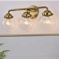3 Light Antique Brass Vanity Light with Globe Clear Glass Shade$40Houston, TX