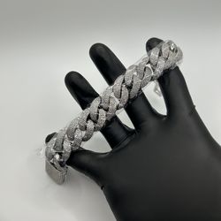 Moissanite Real Miami Cuban Prong Link Iced Bracelet 7.75 Inch Silver Pass Test$150Houston, TX