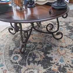Raymour & Flanigan Two-Tier farm house Rustic Rectangular Coffee Table Tile Inlay Oak Border$60Friendswood, TX