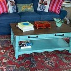 Modern Refinished Coffee Table - Solid Wood Top & Deep Blue Base$200Houston, TX