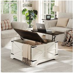 48" Lift top Coffee Table, mid Century Modern Coffee Table with Slatted Sliding Door, Hidden Storage Compartment, 4 Storage Shelves, Center Table for $130Houston, TX