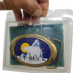Vintage Collectible Alaska ACE Polar Bear Solid Brass & Enamel Belt Buckle