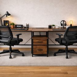 T-Shaped 2 Person Desk with Power Outlet, Long Two Person Gaming Table with LED & Fabric Drawers, 81.2'' Computer Desks with File Cabinet, Double Work$135Richmond, TX