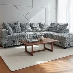 Stunning Grey Fluffy Sectional Couch Delivery Available π$700Houston, TX