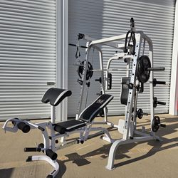 Smith machine Home Gym + 255lbs Plates, Bench And 45lb Barbell$1,650Katy, TX