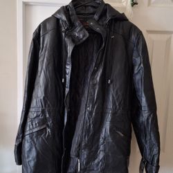 TIBCA Leather Trench W/Hoodie -Heavy & Long-Genuine Leather-Size Large-Loose Fit-Mens-Like New-RARE & Vintage $88Houston, TX
