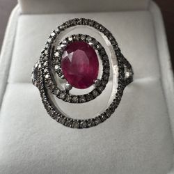 925 Sterling Silver ~8x6mm Ruby & ~1/2CTW Diamond Swirl Ring Size 11$297Houston, TX