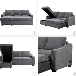 NEW - Grey Sectional With USB Charging Ports & Pull-Out Bed & STORAGE CHAISE Finance $54$1,249Houston, TX