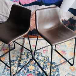 Set of 2 Modern Faux Leather Bar/Counter Stools - Brown, Black Metal Base$60Cypress, TX