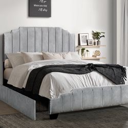 NEW IN BOX Platform Grey Bed Frame- Queen, King with Side Drawer Storage$279Houston, TX