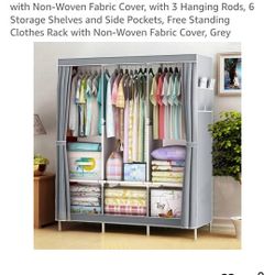 Portable Closet, Storage Organizer Wardrobe with Non-Woven Fabric Cover, with 3 Hanging Rods, 6 Storage Shelves and Side Pockets, Free Standing Clothe$30Houston, TX