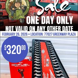 ONE DAY ONLY: Milwaukee M18 FUEL 3/8" compact Impact Wrench & 15-Pc Wrench Set$320Houston, TX