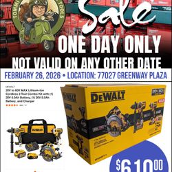 ONE DAY ONLY: DeWALT 20V/60V MAX Brushless 3-Tool Combo Kit (DCK399P1T1)$610Houston, TX