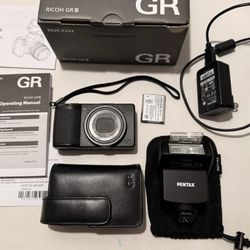 Ricoh GR Digital III 24.2 MP 18.33mm F/2.8 with Pentax AF201FG Auto Flash.$580Houston, TX