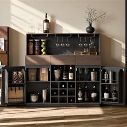 Wine Cabinet with 3 Drawers, Coffee Bar Cabinet with LED Lights, Stemware Holders Wine Racks, Home Bar with Charging Station for Kitchen, Dining Room,$179Katy, TX