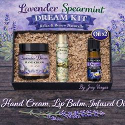 Homemade Organic Lavender Dream Kit Spearmint Lip Balm Hand Cream & Lavender Infused Oil Gift Set$25Harker Heights, TX