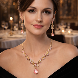 3pcs Women's Bridal Necklace & Earrings Set Gold Tone Pink Crystal Teardrop Elegant Wedding Party Jewelry$12Nolanville, TX