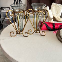 Amber Glass Vases Or Candle Stands • Large 7" Small 5.5 " Tall • Set Of 2$10Killeen, TX