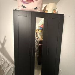🖤 Black 3-Door Wardrobe Closet w/ Mirror — Great Storage$50Temple, TX