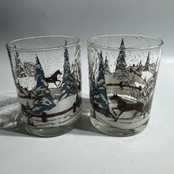 Vintage Culver Snow Scene Barware old-fashioned whiskey Lowball glasses 14oz Rare 2 piece set In excellent vintage condition for the most part, but t$50Temple, TX