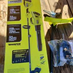Ryobi 40V 'HP' 'Whisper' blower, power unit+weed wacker+brush cutter attachment, battery, charger$340Morgans Point, TX