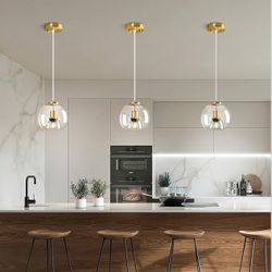 Clear Glass Pendant Lights Kitchen Island 3 Pack 7.87" Glass Globe Pendant Light Gold Hanging Light Fixture Modern Pendant Lighting for Kitchen Island$60Morgans Point, TX
