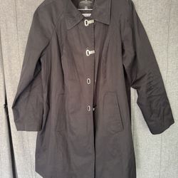 London Fog Womens Black Long Sleeve Collared Latch Front Trench Coat 0X/12 - 14W Tag says 0X which equals a 12 to 14 W One buckle is broken as show$25Temple, TX