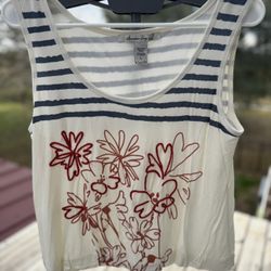 American Rag Cie Blouse Tank Top Womens Size Lg White & Navy Stripe Red Flower$15Temple, TX