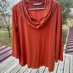 Peter Nygard Solid Orange Cowl Neck 3/4 Sleeve Knit Tee Top - Size 1X$18Temple, TX