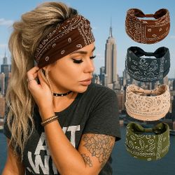 4pcs Vintage Paisley Boho Headband Set for Women Girls – Stretchy Colorful Hair Wraps$11Harker Heights, TX