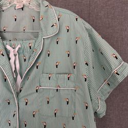 J. Crew Pajama Pj Green Striped Toucan Cotton Poplin Loungewear Short Sleeve 2X$38Temple, TX